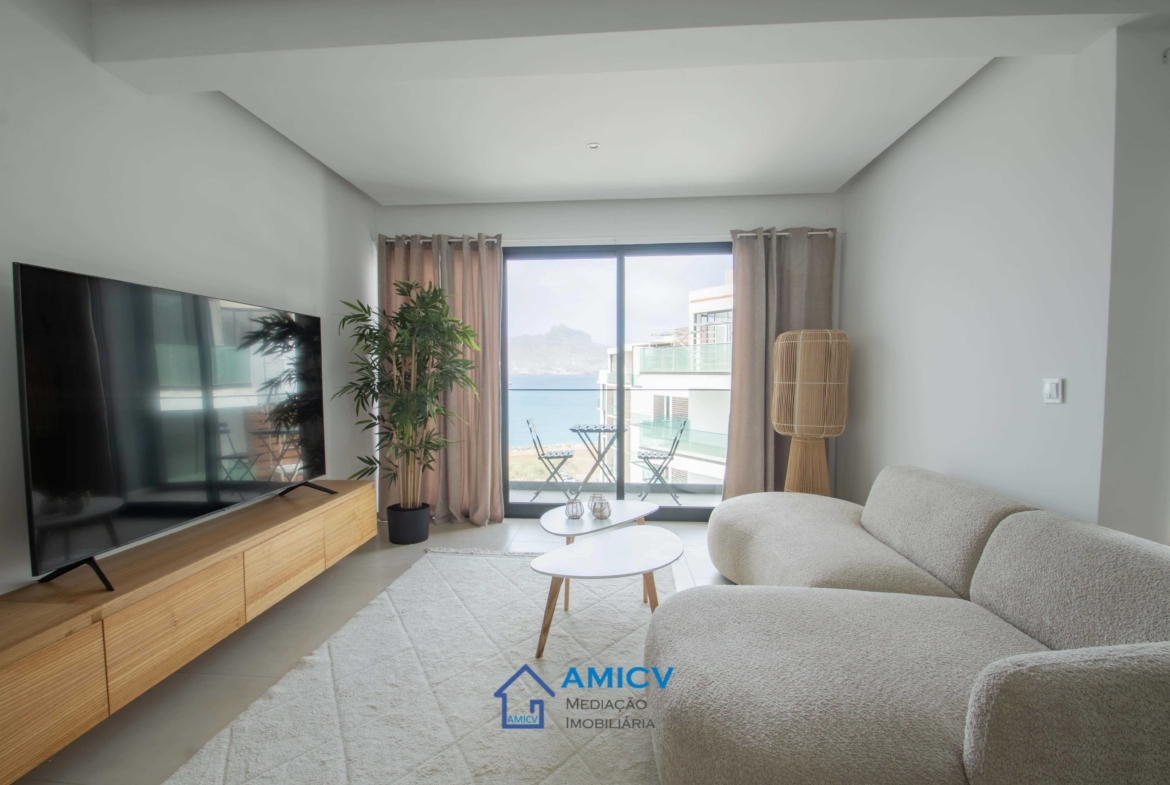 The apartment – luxury with panoramic views of Mindelo, Laginha and Monte Cara – is for sale fully equipped and furnished with soft decor.