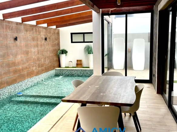 AMICV, Real Estate Agency in Cape Verde, presents this villa in the gated community Martini Resort in Calhau, with swimming pool and direct access to the beach.