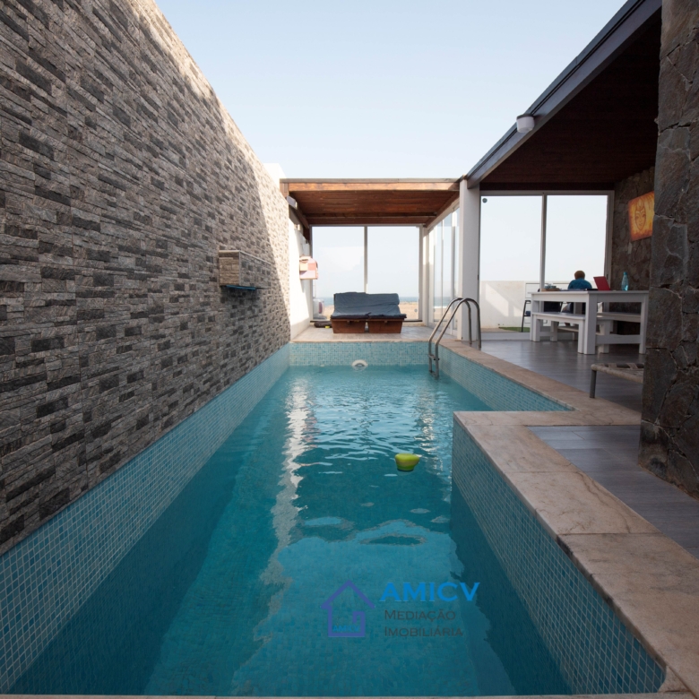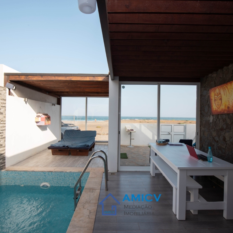 AMICV, Real Estate Agency in Cape Verde, presents this villa, in the gated community Martini Resort in Calhau, with swimming pool and direct access to the beach.