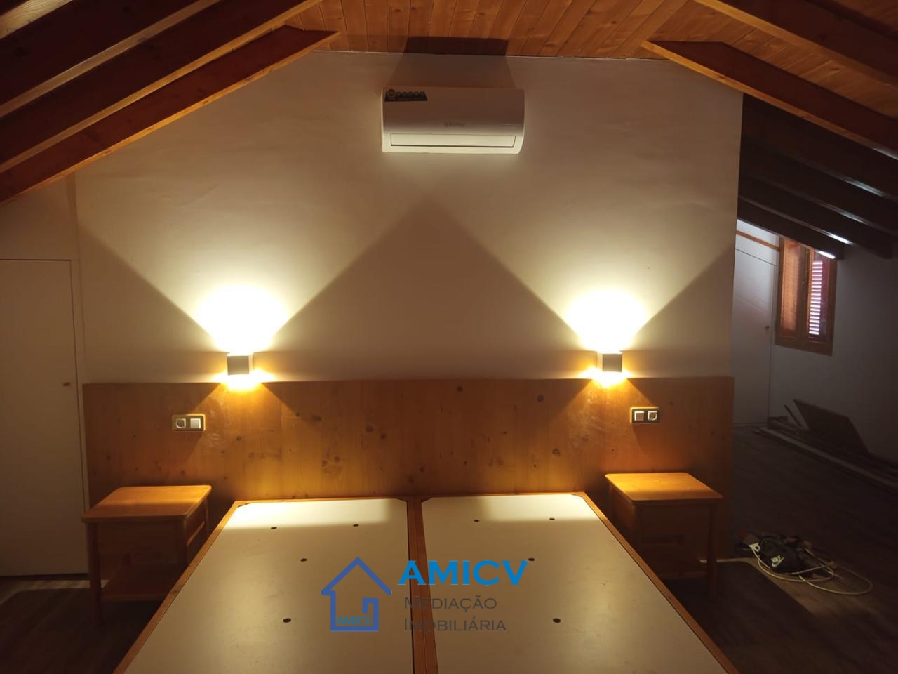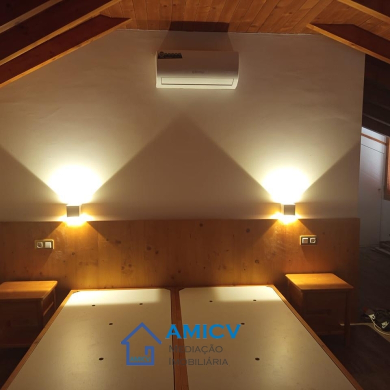 O apartamento totalmente mobiliado e com ar condicionado fica no 1° andar de um prédio totalmente remodelado. A decoração é elegante, com vigas de madeira expostas no teto, piso e casa de banho em cerâmica.